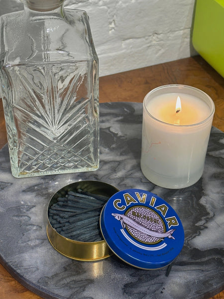 Bring your love of caviar to your home! These caviar match strikers come with ~75 black strike anywhere matches with a conveniently located striker on the inside lid. I mean can you get any chicer?!