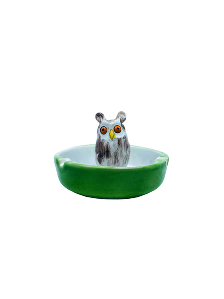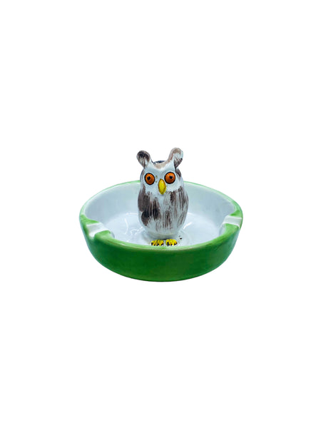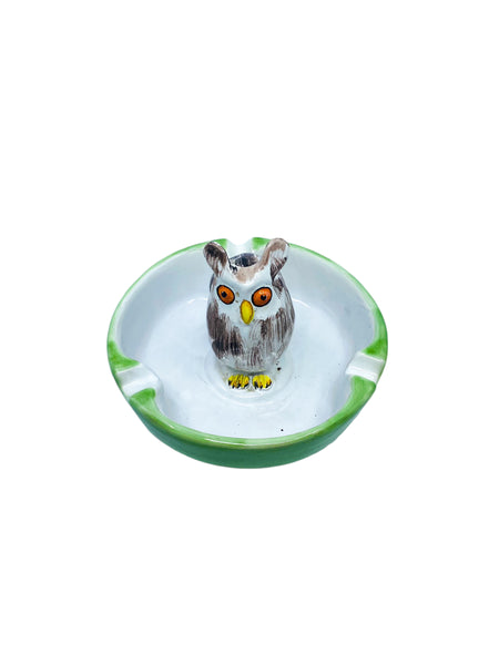 Vintage Majolica Ceramic 3D Owl Ashtray, Made in Italy