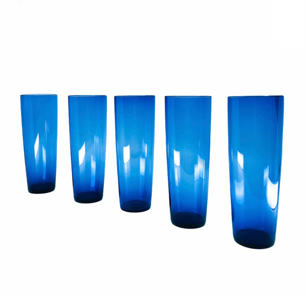 Vintage Blue Slim Tallboys, Set of 5