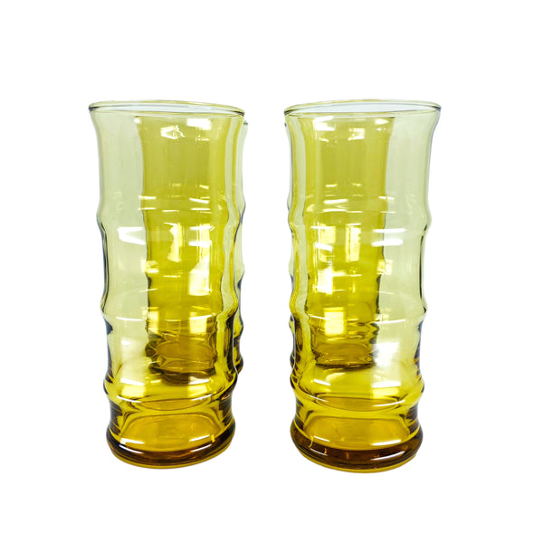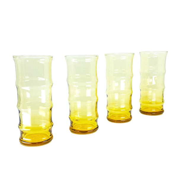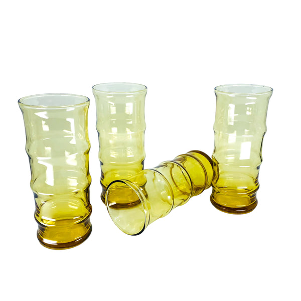 Vintage Libbey Amber Bamboo Highball Glasses, Set of 4