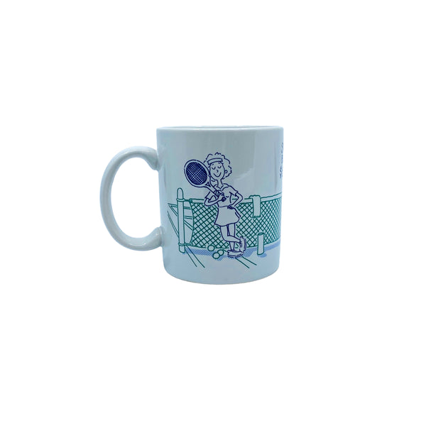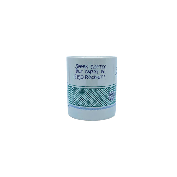 Vintage “Speak softly, but carry a $150 racket” Tennis Mug, 1989