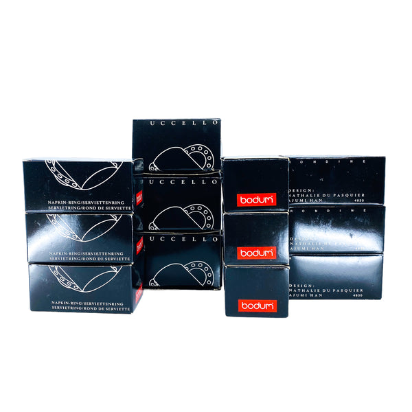 Notes: Six silver plated napkin rings made by the French designer Nathalie du Pasquier and the Japanese Ajumi Han for Bodum.