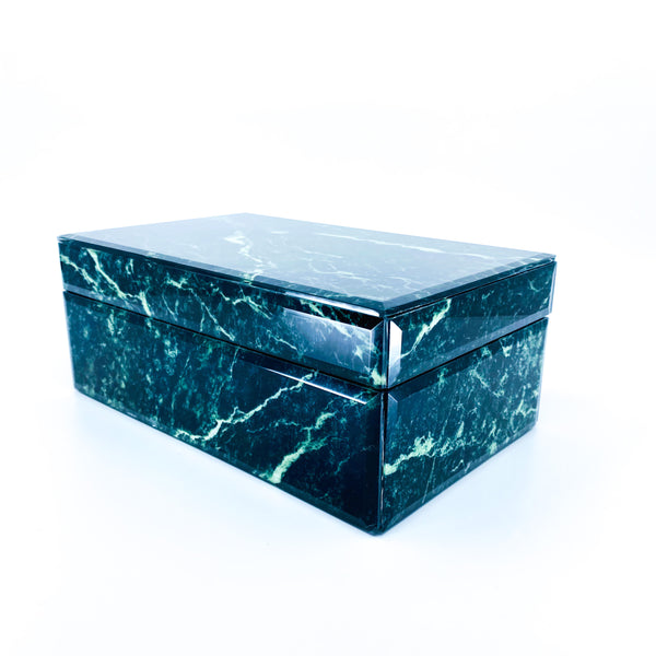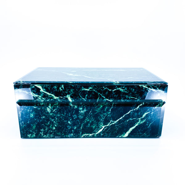 Condition Notes: Items may show wear consistent with age and use, and are in good vintage condition unless otherwise noted. 2 small chips on the bottom of the box, not on surface of glass- shown in last photo.
