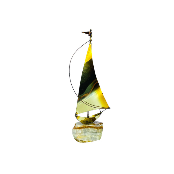 Vintage MCM Signed Demott Brass Sailboat Sculpture