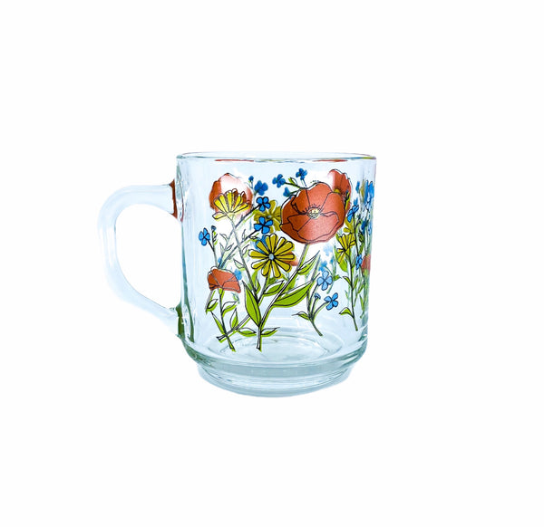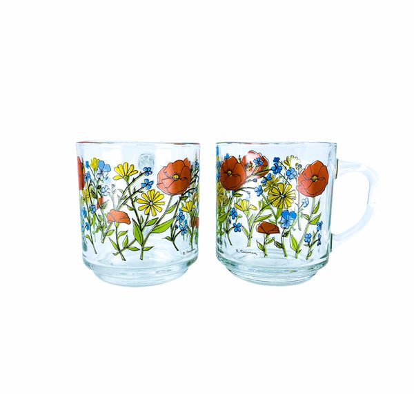 1970’s R. Carman by Arcoroc France Wildflower Glass Mugs, Set of 3