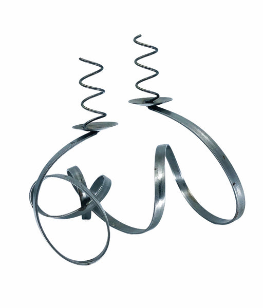 Description: Very fun hand made Iron candleholder, designed by Greg McGibbon for DuPont Iron Works. Perfect for tablescapes this holiday season or even add a pop to a bookshelf or console table.
