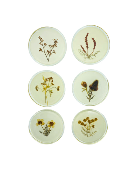 Vintage Pressed Flowers Coaster Set, S/6